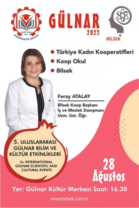 5. Uluslararası Gülnar Bilim ve Kültür Etkinlikleri kapsamında yürütülen Kadın Gücü ve Kadın Emeği Çalıştay’ında; Bilsek Koop Başkanı, İş ve Meslek Danışmanı, Uzm. Ust. Öğretici Feray ATALAY tarafından, dünyanın çeşitli bölgelerinden katılım sağlayan üniversite öğretim üyelerine kadın kooperatifleri konulu sunum yapılmıştır.