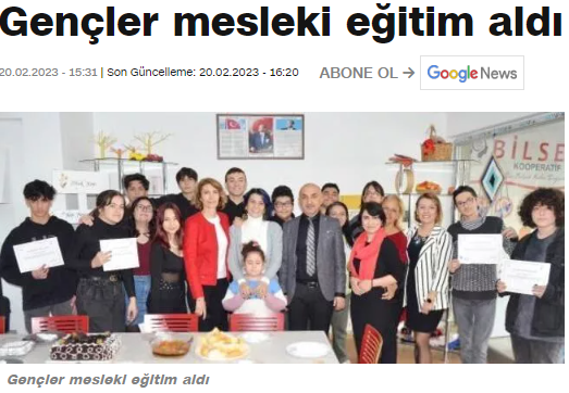 Mesleki Eğitim Sistemi Eğitim Merkezi (MESEM), Usta Telafi Programı (UTP) kapsamında sürdürülen eğitimlerde başarılı olan katılımcılara belgelerini Azize Kahraman Halk Eğitimi Merkezi Müdürü Fedai Yaman, BİLSEK Başkanı Feray Atalay, yönetim kurulu üyeleri verdi, “Yolunuz açık olsun” denildi.